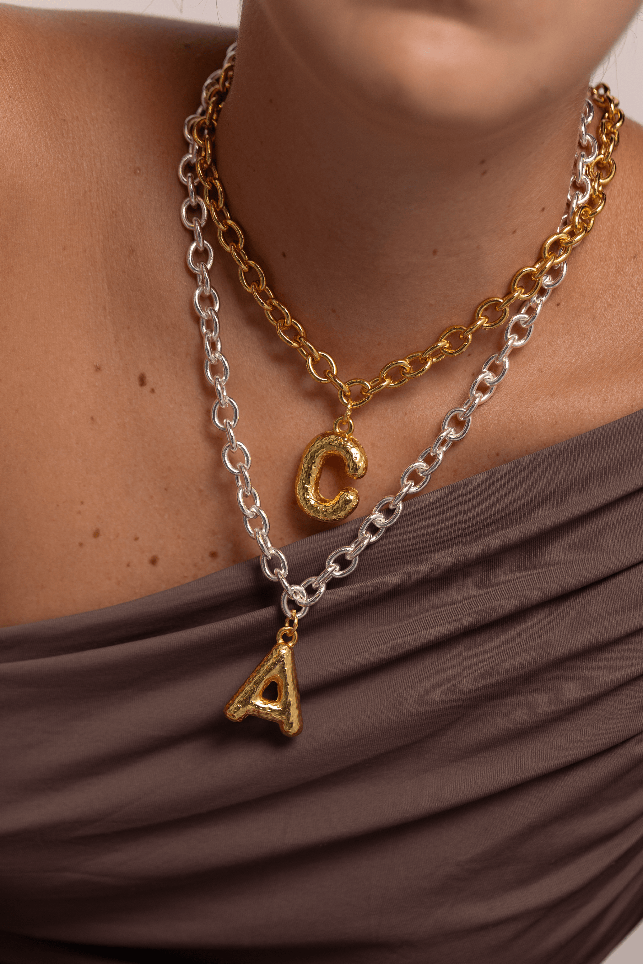 • Collar en diferentes metales con baño de oro de 24kts.